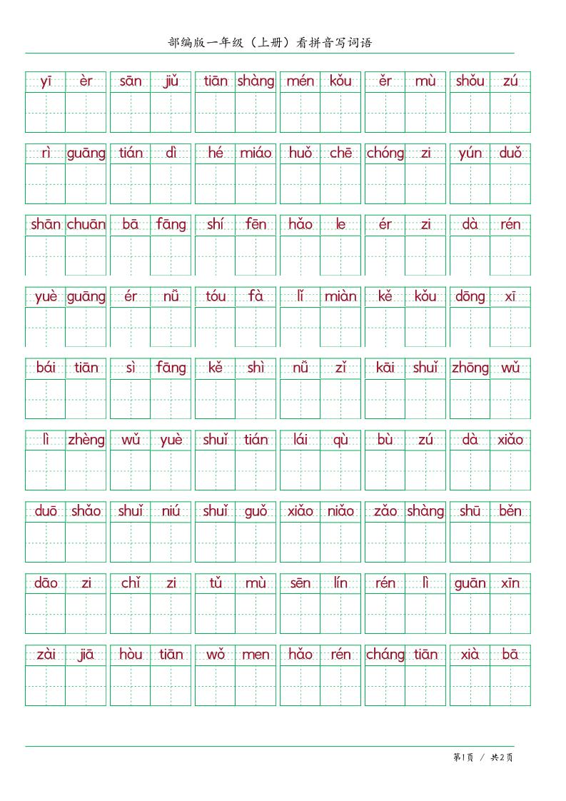 一上语文看拼音写词语