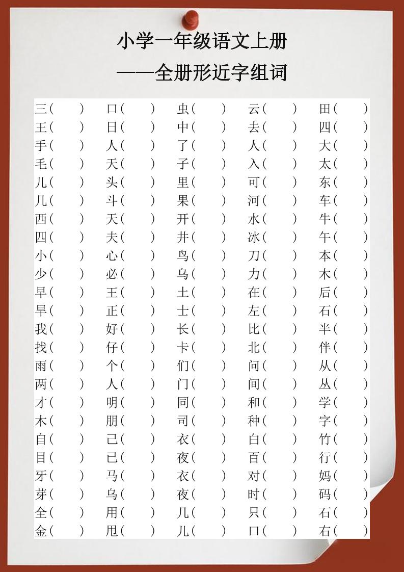 【2025秋新版】小学一年级语文上册全册形近字组词