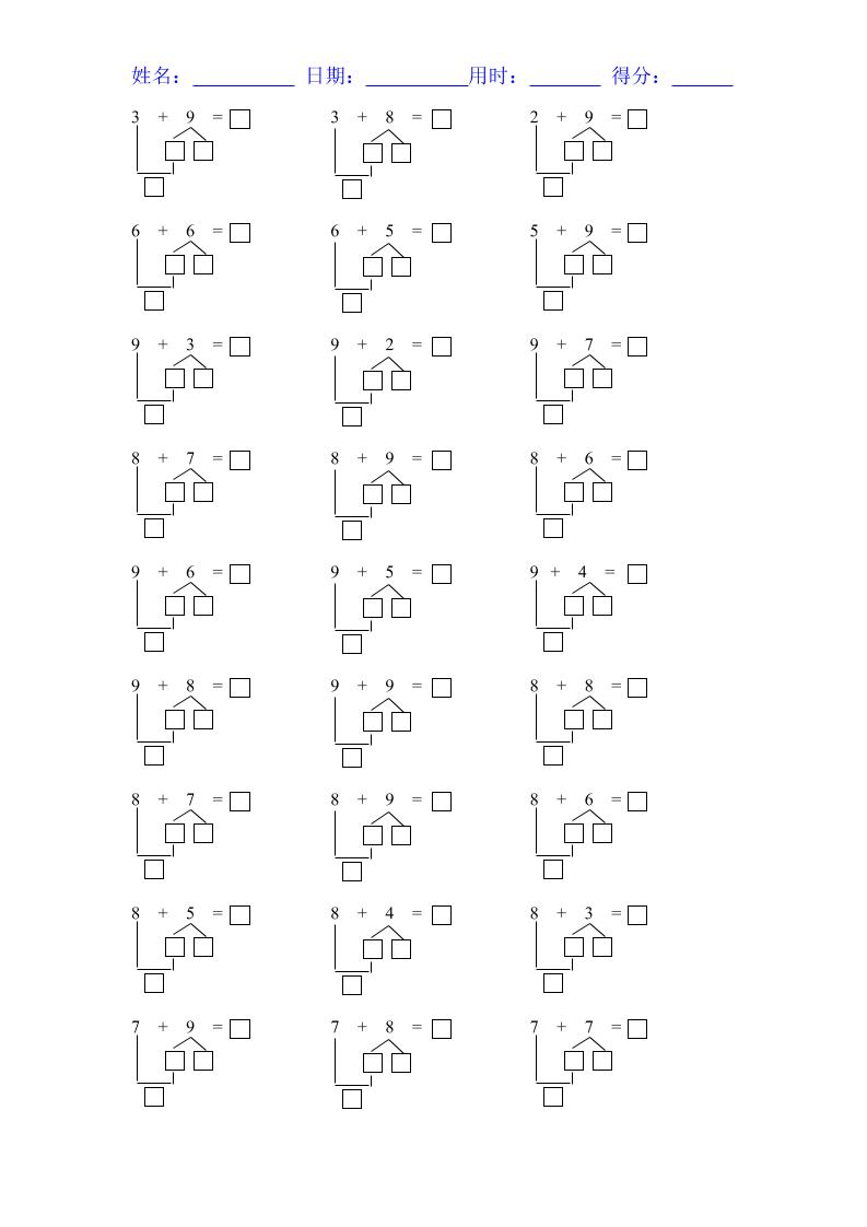【2025秋新版】一年级数学上册『20以内凑十法』练习题16份