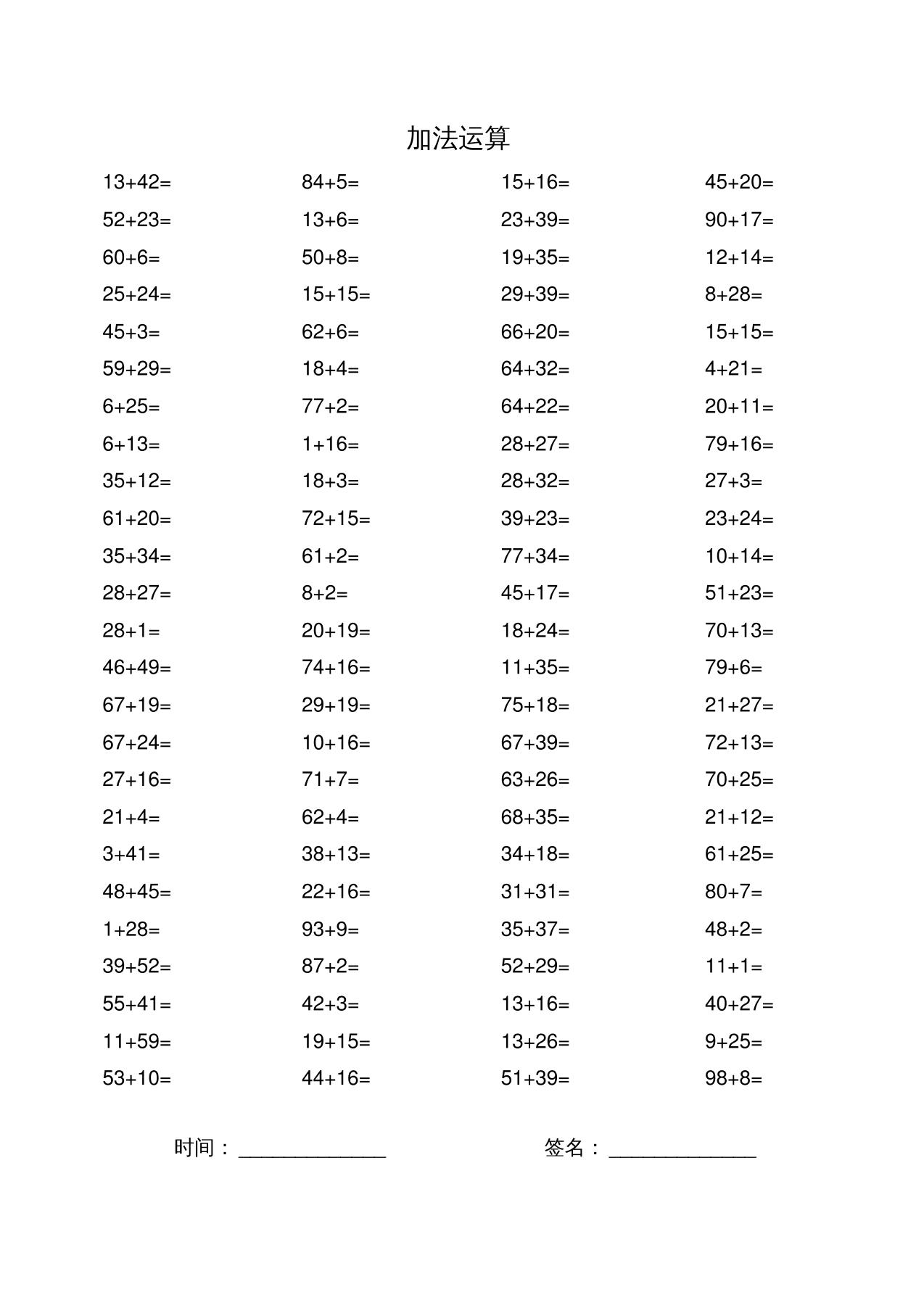 二升三数学暑假作业-加减乘除混合运算口算题60张二下