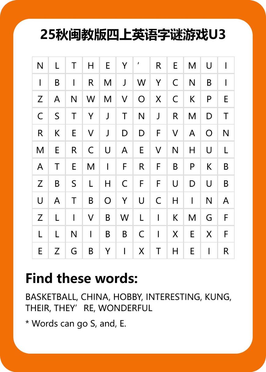 25秋闽教版四上英语字谜游戏U3