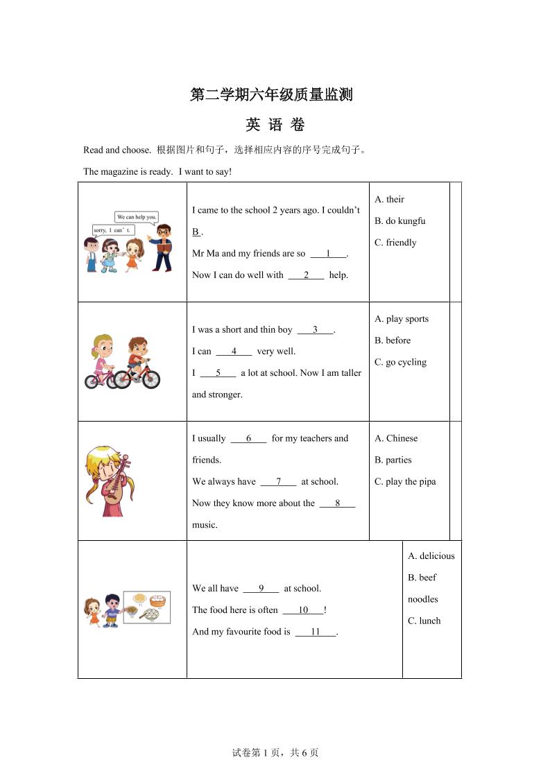 人教PEP版六年级下册期末考试英语试题
