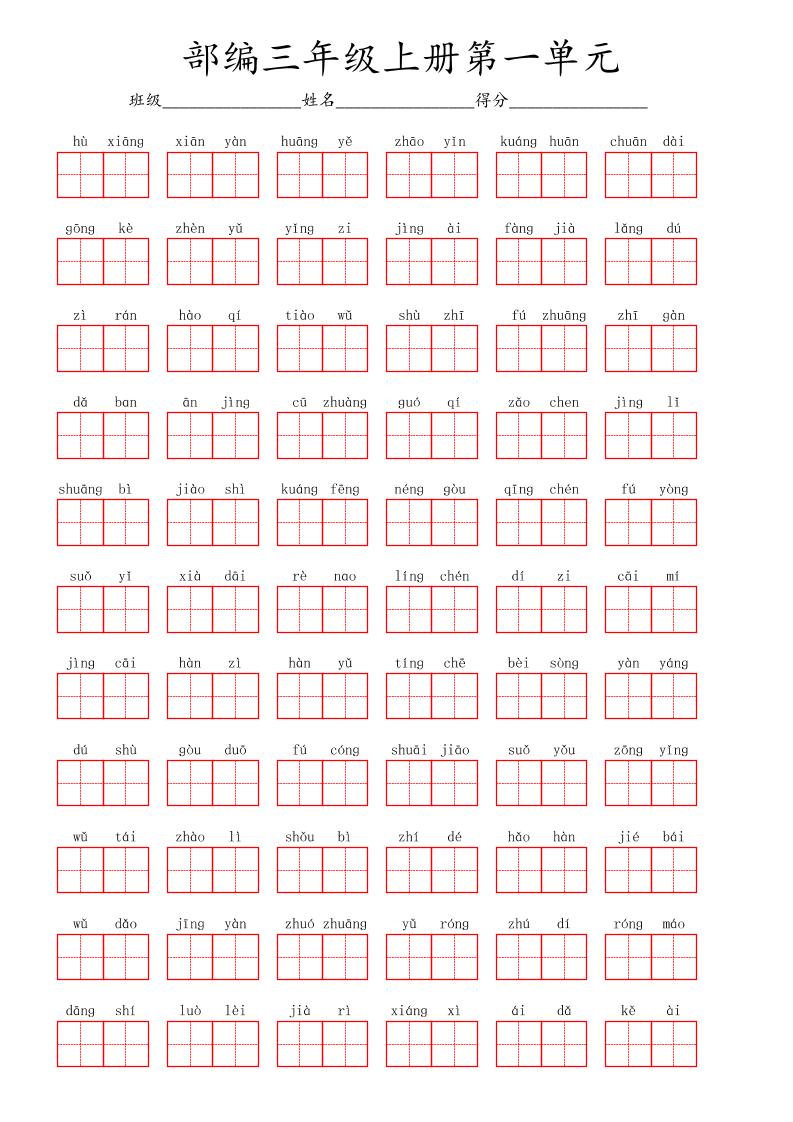 看拼音写词语三年级上册语文第一单元