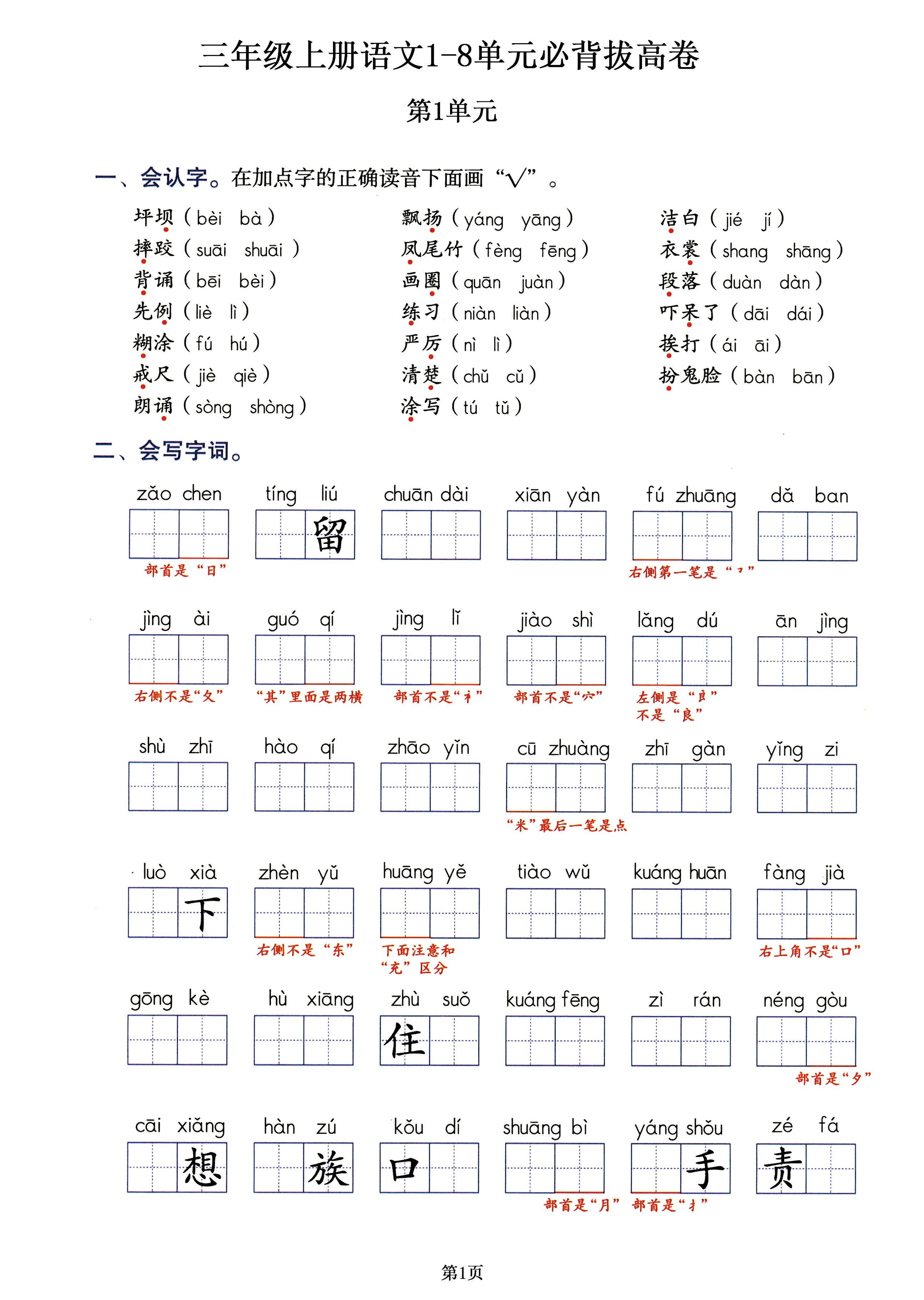 三上语文-生字专项