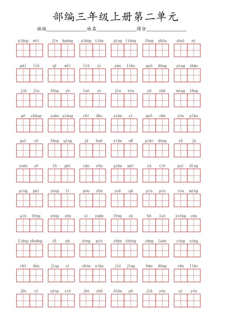 看拼音写词语三年级上册语文第二单元